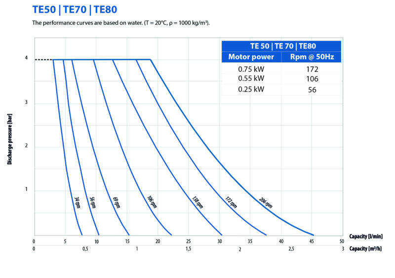 | PE HD & PTFE | Capacidad máxima (l/min) |